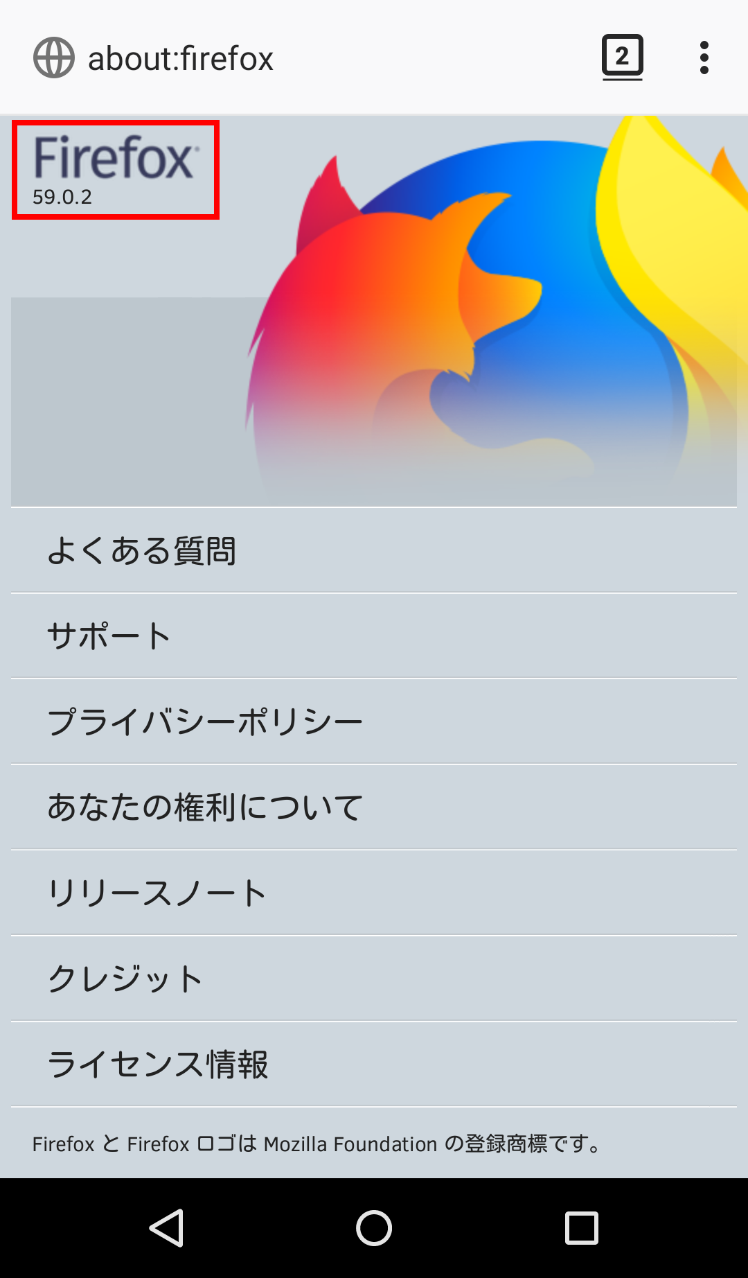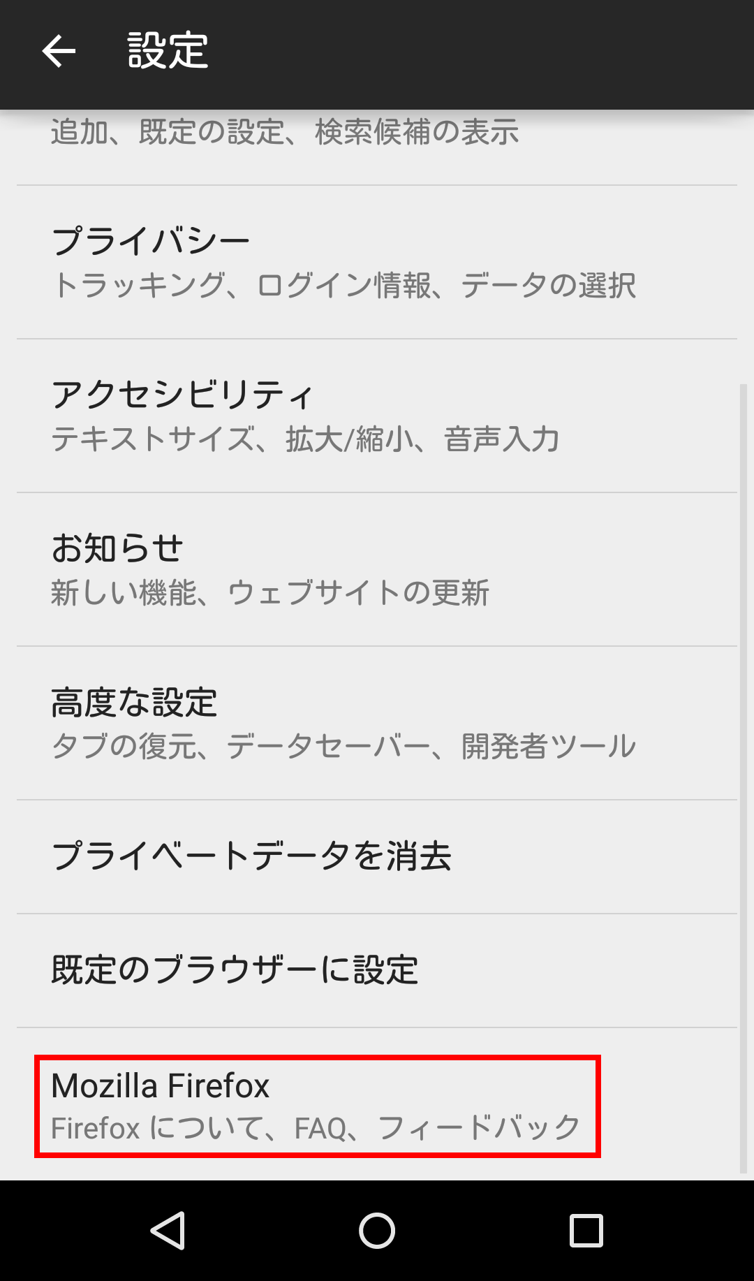 [Chromeについて]をタップすると、「アプリケーションのバージョン」の下にバージョン情報が表示されます。